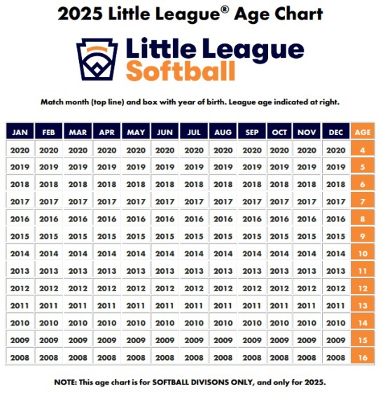 If you're not sure what your daughter's league age is, see the 2025 Little League Age Chart below.