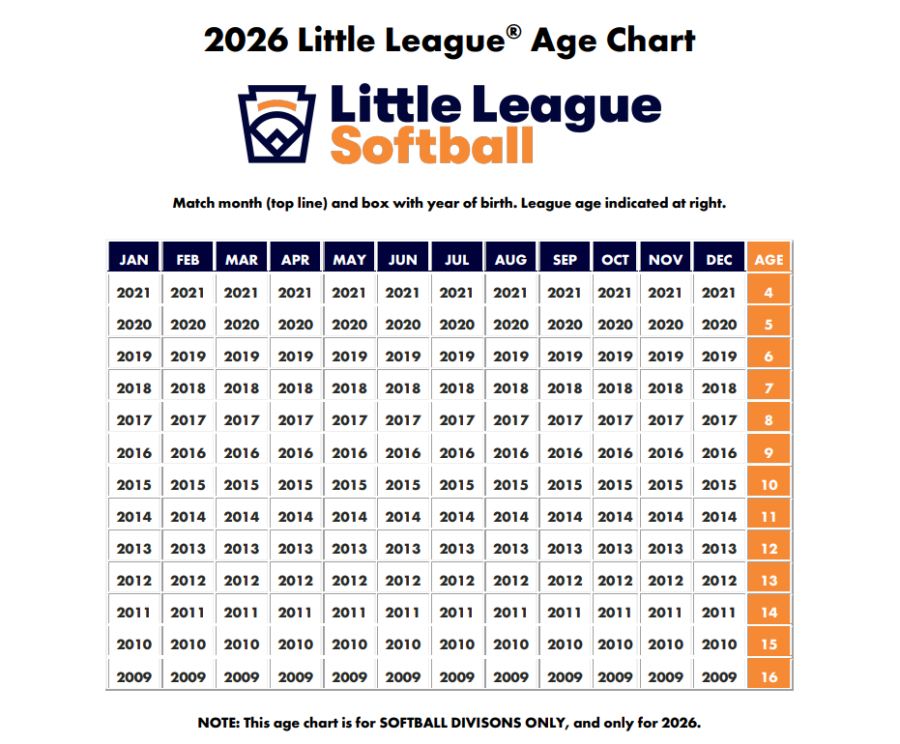 The competition is limited to league age 7 to 14 years. See below for age chart.